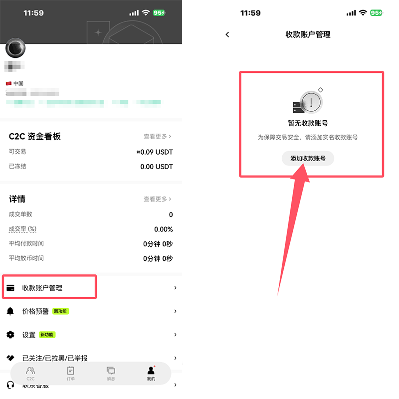 打开binanceAPP首页,点击C2C买币,点击右上角我的图标—收付款设置—添加收款方式,选择相应的银行卡/支付宝/微信支付进行绑定设置即可。