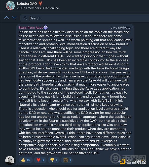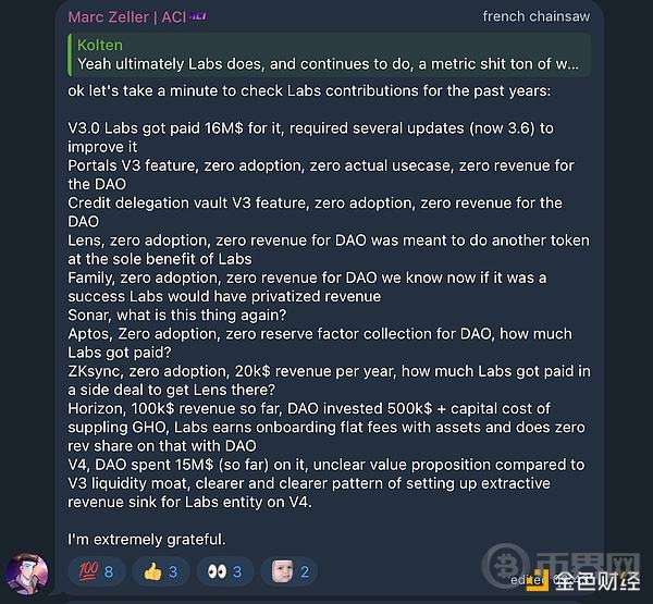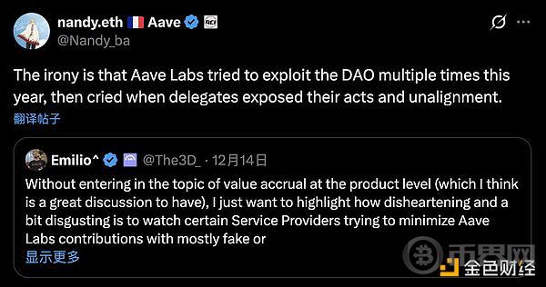 吵架,Emilio认为有人在恶意贬低Aave Labs的贡献和价值。ACI团队成员则指出Aave Labs曾多次试图利用DAO,并且被揭穿。