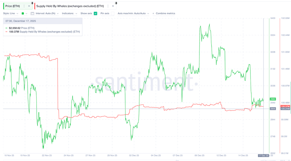 3000 美元这个价位现在非常重要。如果 ETH 价格下跌并持续低于这个价位,下一个强支撑位在 2620 美元附近。这意味着价格将比当前价格下跌约 11%。