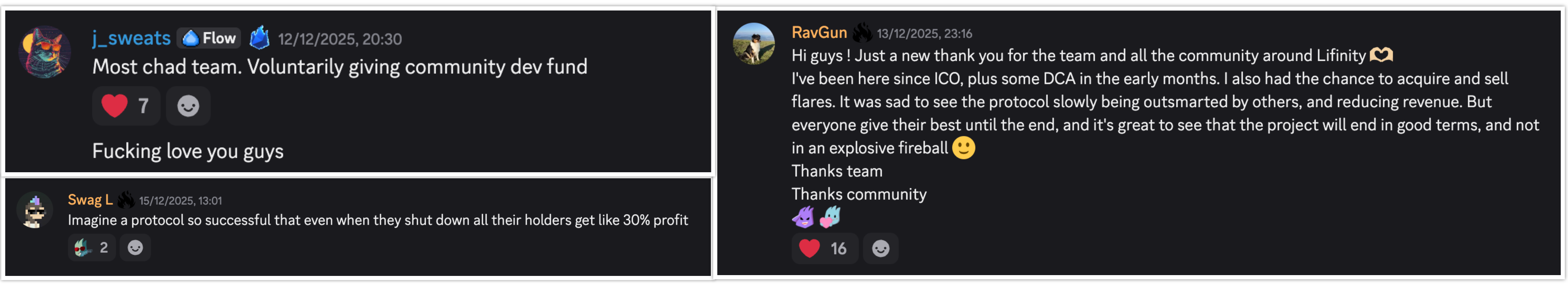 Lifinity 的关闭获得了压倒性的积极反响,许多社区成员都深情地回顾了该协议的生命周期和在该领域的完整性。
