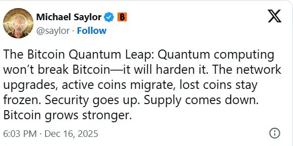 迈克尔·塞勒反驳了量子力学方面的担忧,他认为这项技术实际上将会……增强比特币而不是削弱它他认为,量子计算的进步将推动整个网络安全措施的改进。