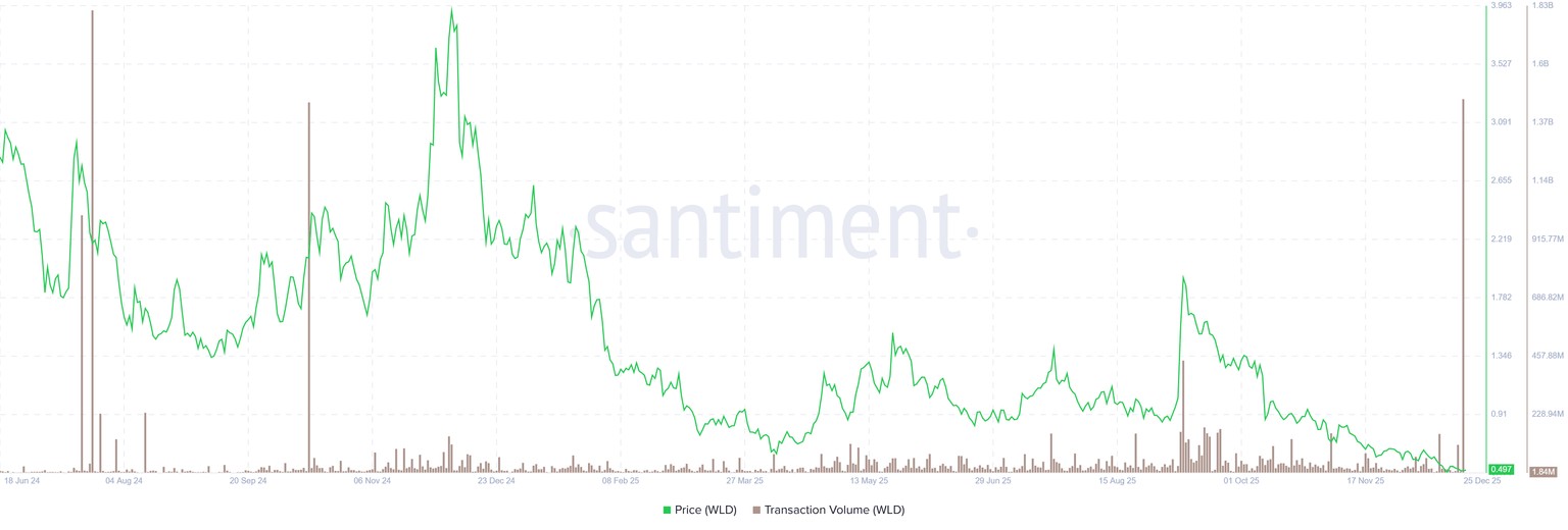 WLD交易量图表。来源:Santiment