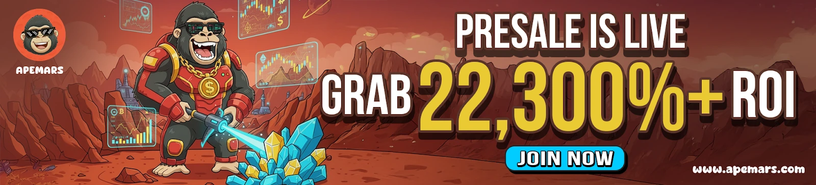 与目前最值得购买的加密货币相比,APEMARS以 0.00002448 美元的价格进入第三阶段,上市目标价为 0.0055 美元,随着预售势头的增强,上涨空间高达 22,367%。