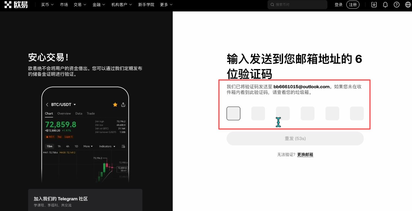 这个时候binance会向我们的邮箱发送一封验证码,我们回到邮箱查看一下,然后把它输入进来。