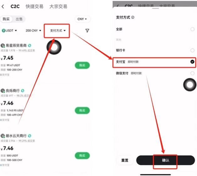 点击binance首页的【买币】,这里有C2C买币和快捷买币,我们选择C2C买币。