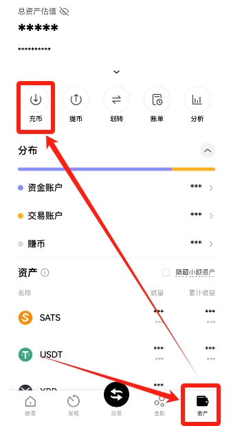 通过“资产”页面充值。