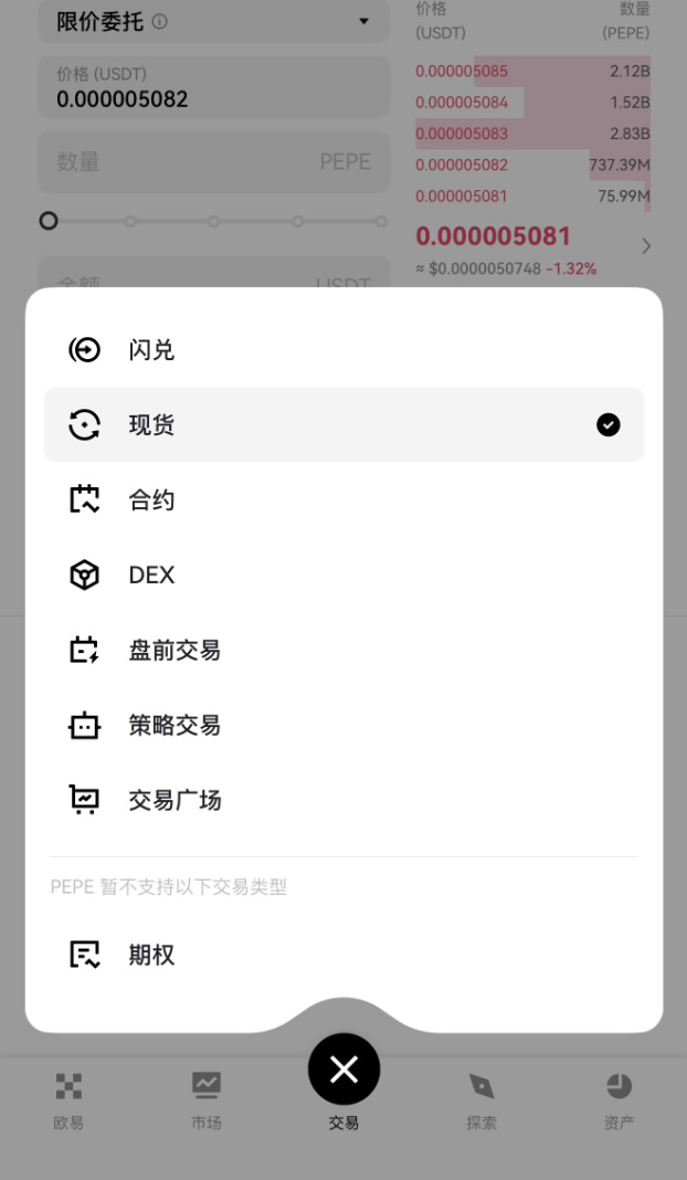现货交易是一种交易类型,允许用户以当前的市场价格购买和出售加密货币。现货交易为用户提供了一种简单明了的方式来交易平台上的加密货币。