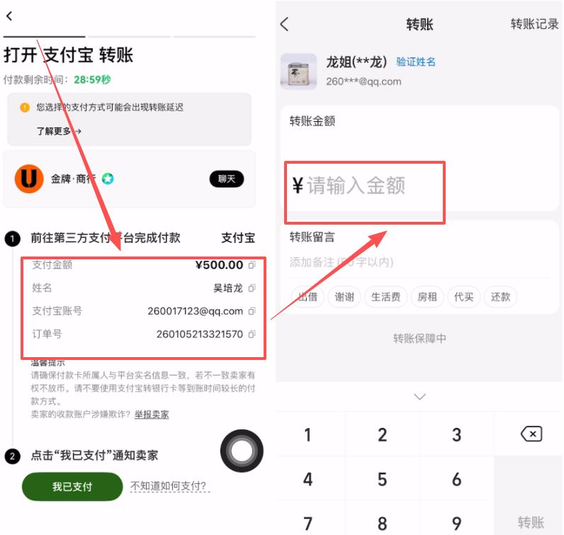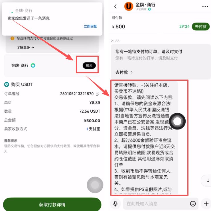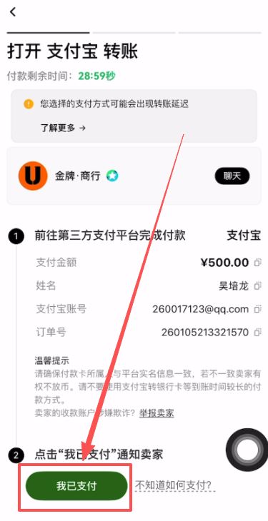 如果发现商家的账号是隐藏的,或者有特殊要求,可以在聊天框中单独询问商家。确认信息无误后,离开binanceApp,打开你的支付宝或网银,按照商家要求的金额进行转账。