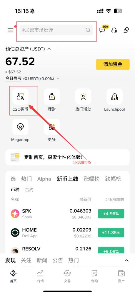 进入法币交易页面:在币安主页,交易>C2C进入法币交易界面。