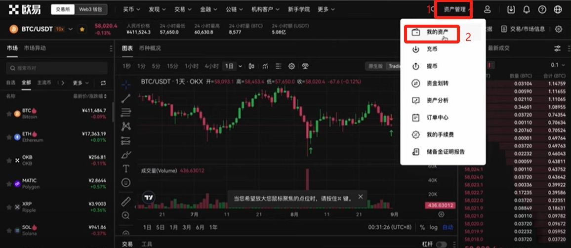 买完USDT之后,我们来到右上方的【资产管理】,找到【我的资产】。