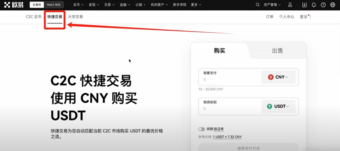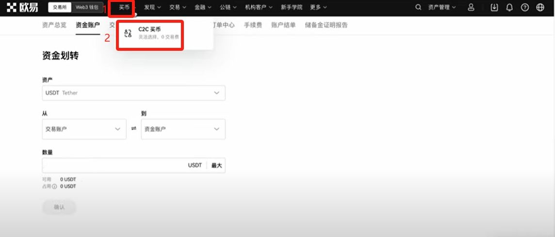 划转成功之后,我们还是来到【买币】,选择【C2C买币】。