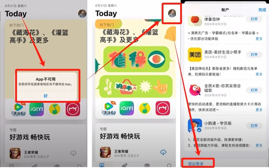 注册完之后我们点击右上角的小头像,往下捯点击【退出登录】。