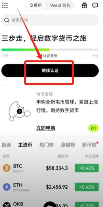 现在我就在我的手机上面登录好了我们的binanceAPP。我们点击这里的【继续认证】。