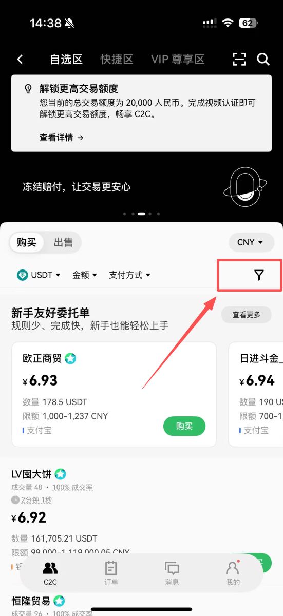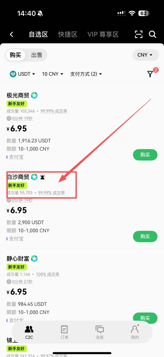 1.筛选商家:在自选区的买入页面,通过右上角的筛选功能,开启“仅显示无需验证单”和“新手友好委托单”,以简化流程。