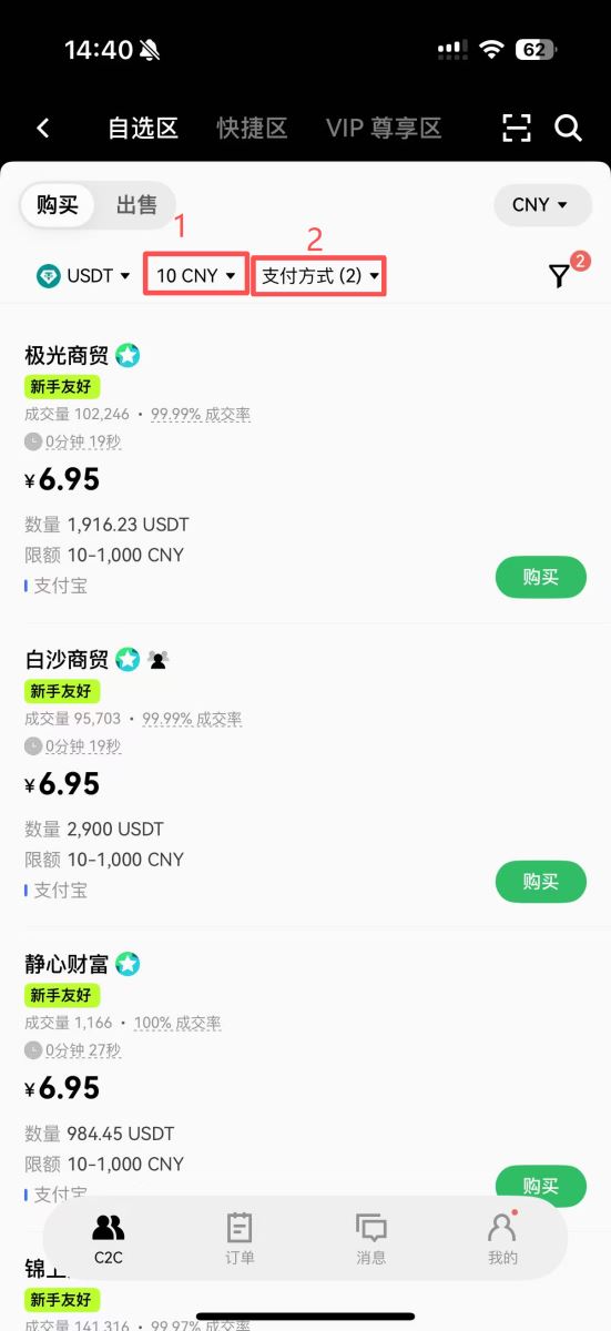 - 第二步:通过C2C交易购买USDT