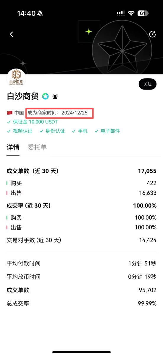 2.选择可靠商家:在筛选出的商家列表中,优先选择成交量大、成交率高且成为商家时间较长(建议至少半年以上)的商家进行交易,其账户的存续时间是资金安全的重要指标。