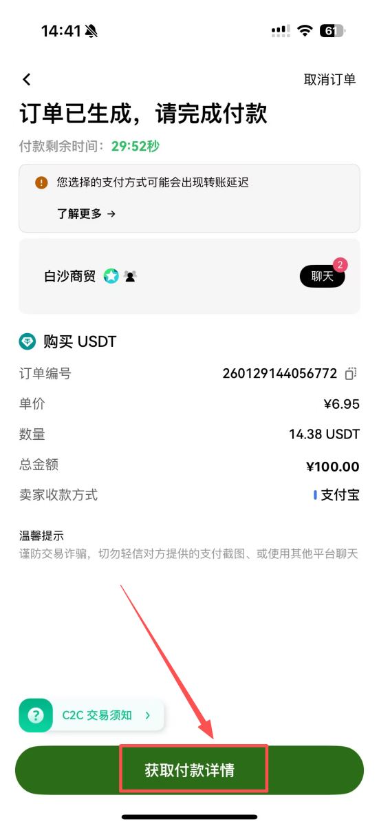 4.确认收款:付款完成后,回到binance平台点击“我已支付”通知卖家。卖家确认收到款项后,便会将相应数量的USDT释放到您的账户中。
