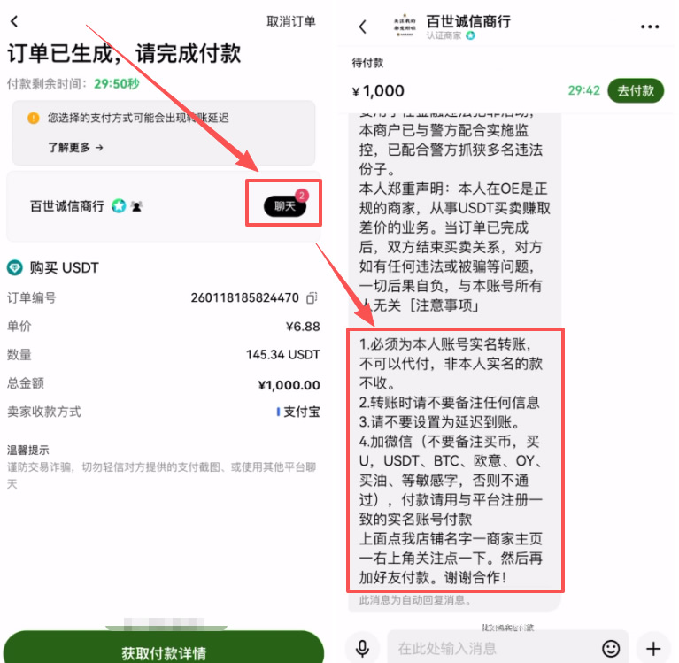 核对要求:进入订单详情页,先点击“聊天”窗口,仔细阅读卖家要求(通常要求实名付款、转账时不写任何备注、不接受延迟到账等)。