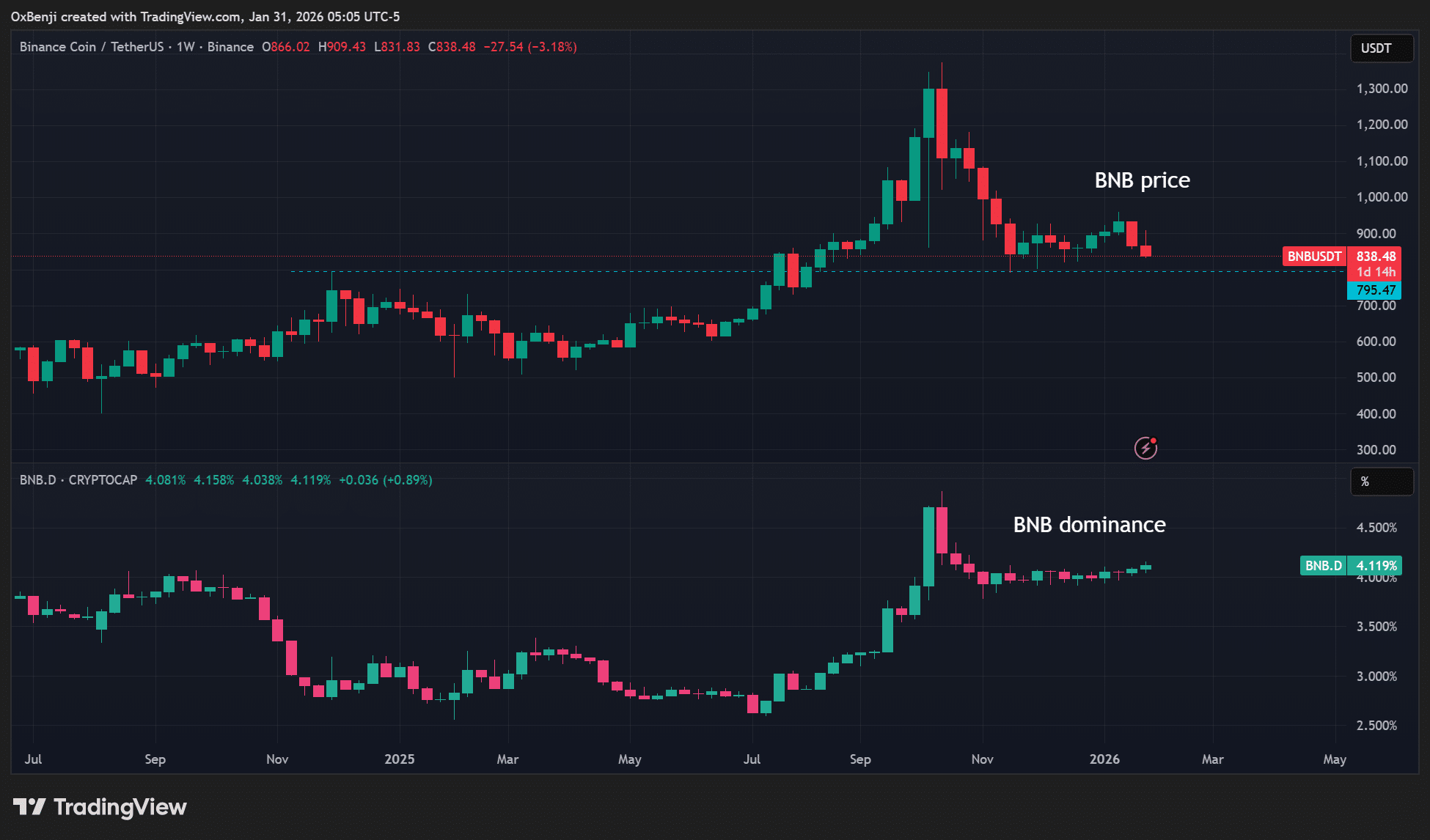 数据来源:BNB价格与市场份额对比,TradingView