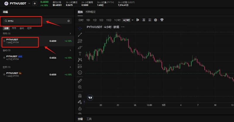11、在搜索框输入MATIC,选择MATIC/USDT交易对,可以看到MATIC实时行情