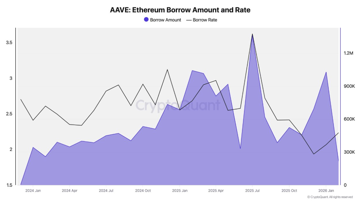 到 2026 年初,ETH 使用量接近 30 万,利率降至 1.5% 至 2%,反映出风险偏好降温和杠杆重置。
