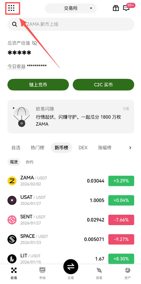 打开binanceApp(官方注册 官方下载),点击左上角的点阵图标