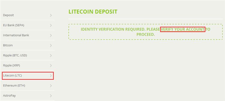 比如说充值LTC,点一下会提示进行身份验证