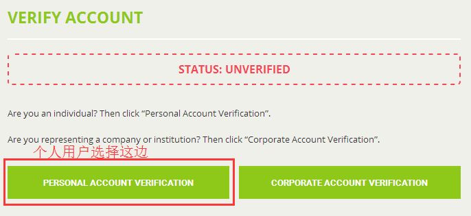 2. 选择 “Personal Account Verification”(个人账户验证)进入验证界面
