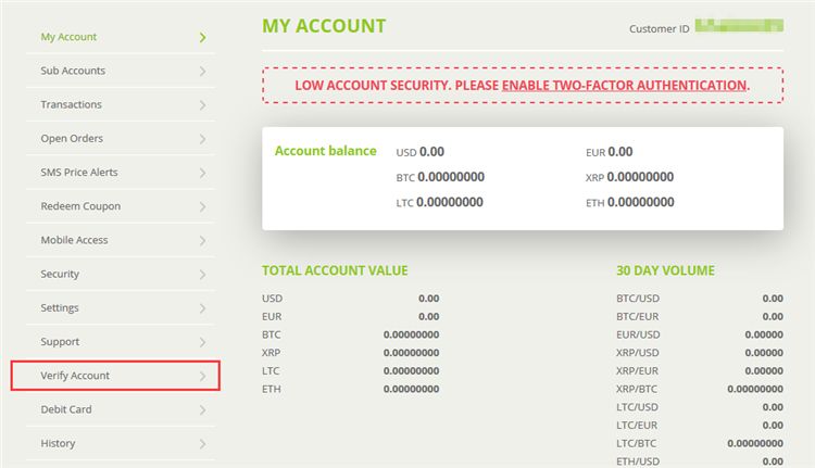 1. 重新登录后,在账户界面左侧点击 “Verify Account” 进入账户认证界面,这样就可以开始 KYC 流程了。