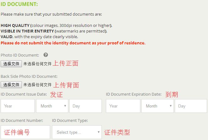 Back Side Photo ID Document:上传证件背面的扫描件或高清拍照(护照可以两面扫描或拍照在一张然后重复上传)。