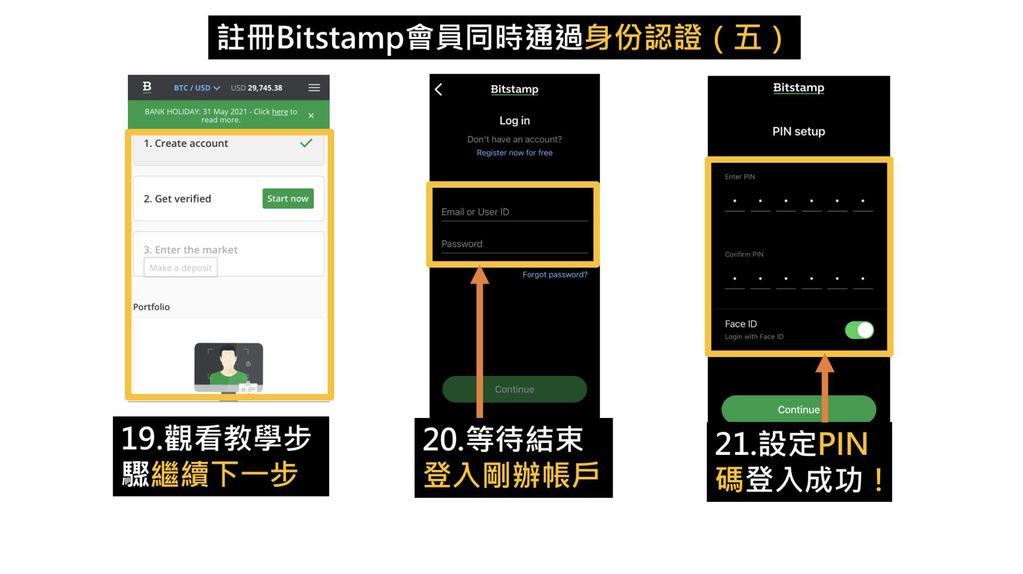 - Bitstamp交易所注册+高级身份认证:前往官方App操作