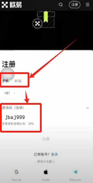 直接输入手机号或者邮箱号就可以注册了。通过这个邀请码:jbzj999注册的,可以获得全网最高的返佣以及数字盲盒一个。