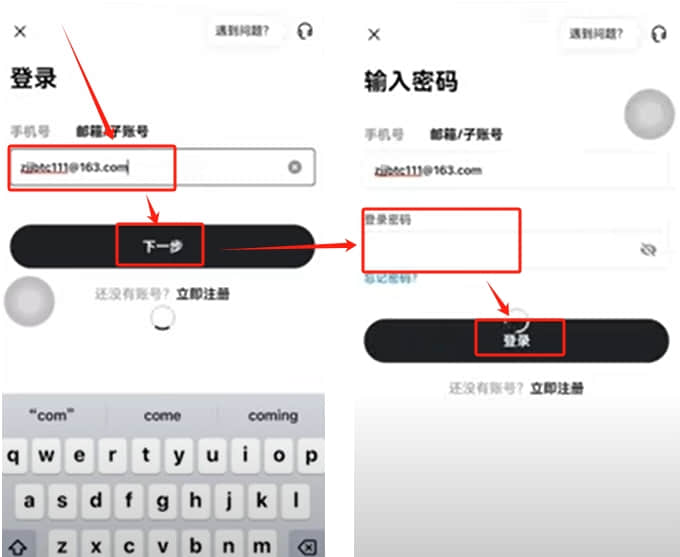 输入我们刚才已经弄好的账号,点击【下一步】。然后输入账户密码,点击【登录】。