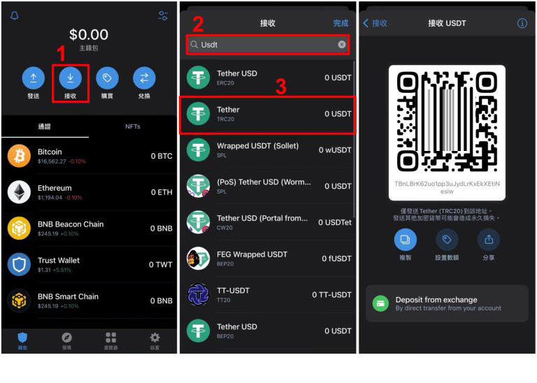 - Trust Wallet 钱包区块链转帐入金