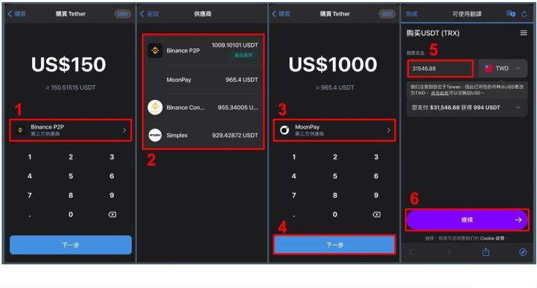另外,虽然Trust Wallet 内建信用卡购买加密货币的功能,对想快速入金的人来说十分方便,但手续费很高,所以建议先透过币安、binance、火币、Gate.io、Bitget、Bybit等购买USDT,再转帐到Trust Wallet,能省下不少交易费用。