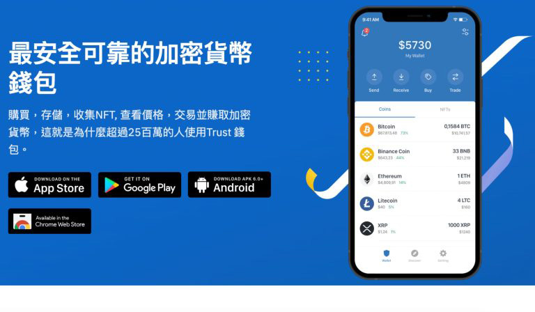 在 Googe Play 商店 和 App Store 上皆可下载Trust Wallet,网页版也有扩充插件可以安装。