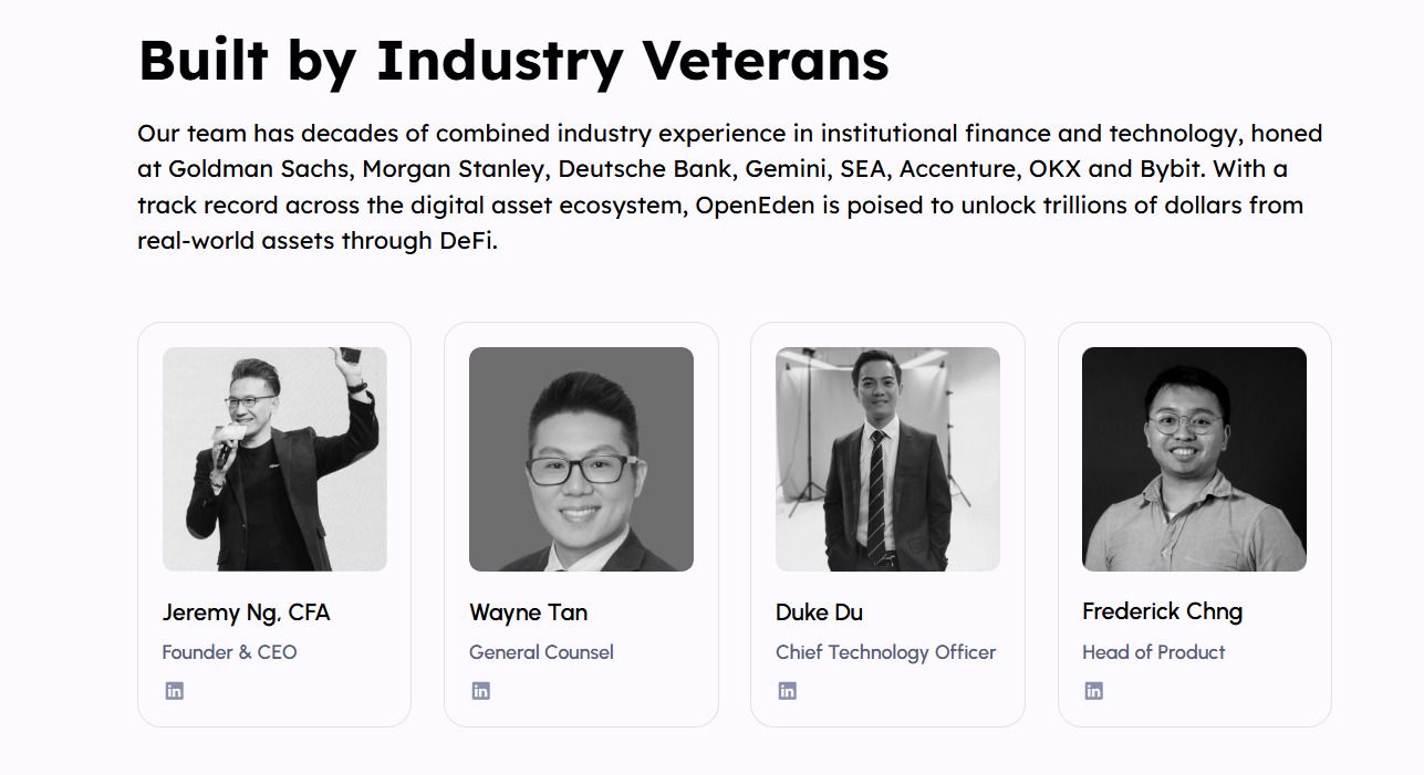 OpenEden 于 2022 年由 Jeremy Ng 创立,他是一位在传统金融和加密领域都拥有丰富背景的资深高管。