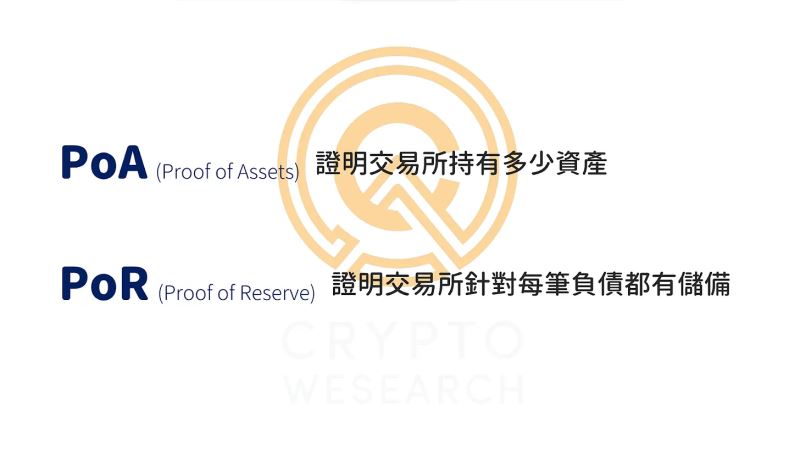 - POR – 储备证明,针对每个客户资产,交易所都有对应的足额储备(需要另外计算验证制作,多是每月或每季更新)