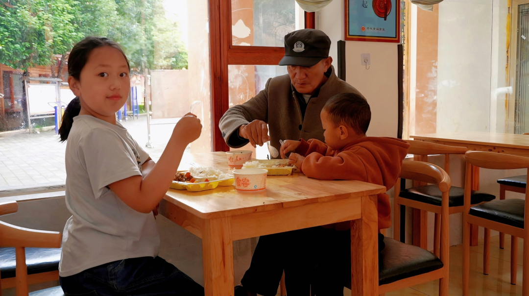 社区的老人和小孩在“幸福食堂”享用午餐。(丽江融媒记者 闵志龙 摄)