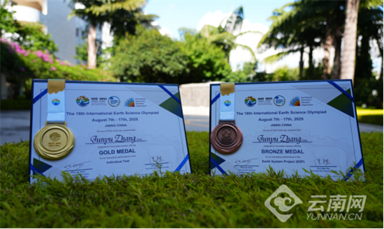 值得关注的是,中国国家队在本届赛事中整体表现优异,4名正式队员共斩获个人赛3金1银、ESP项目2金1铜、ITFI项目1金1银1铜。而张俊宇所在的云南师大附中,虽在地球科学竞赛领域起步较晚,但成绩斐然——在2024–2025学年全国中学生地球科学奥林匹克竞赛决赛中,该校10人获奖,人数居全国第一,其中5人获金奖、2人银奖、3人铜奖。