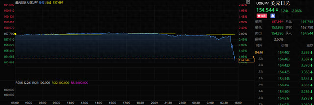 美元兑日元一度跌破154关口