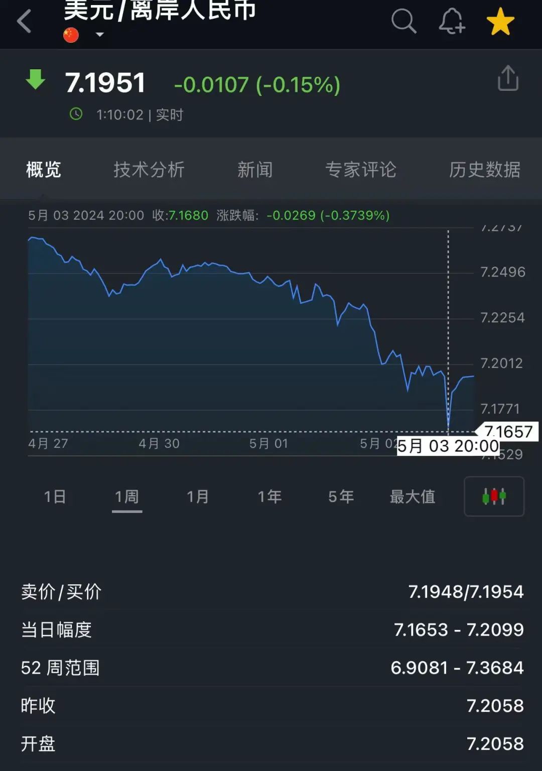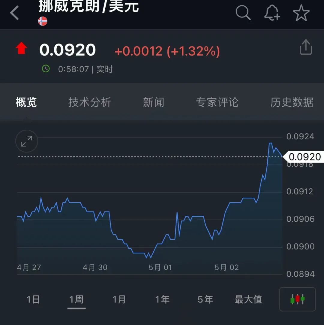 美元走弱的同时,非美货币全线走强,日元兑美元汇率一度大涨1%,最高触及152.00关口;本周,日元兑美元汇率上涨了4%,有望创下2022年11月以来的最佳单周涨幅。欧元兑美元急涨,刷新4月10日以来的高点,现报1.0761;澳元兑美元日内涨幅一度超1%,报0.6610;挪威克朗兑美元一度大涨超2%,报0.0920。离岸人民币兑美元一度升破7.17,最高触及7.1656,创1月下旬以来最高水平,截至发稿时下跌,现报7.1951。