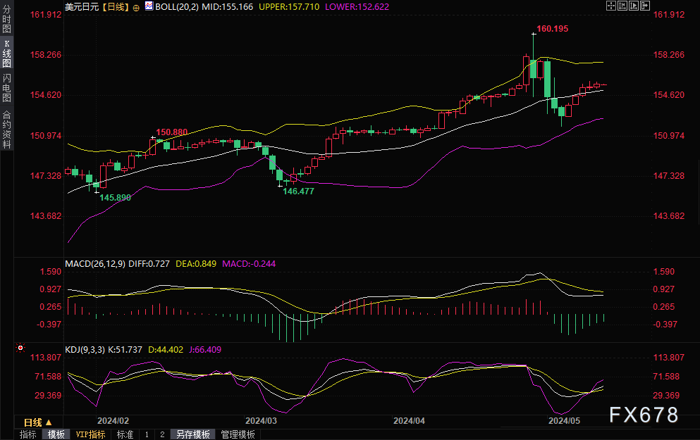 (美元兑日元日线图,来源:易汇通)北京时间05:53,美元兑日元现报155.66/72。
