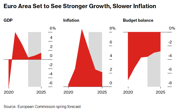 欧盟委员会表示,欧元区经济仍在走向软着陆,通胀回落的速度比此前预期的要快,经济增长将在明年提速。