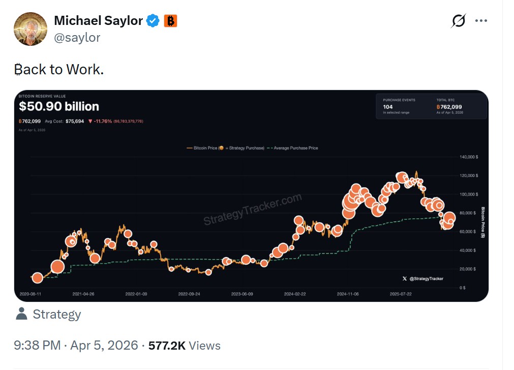 迈克尔·赛勒暗示,他的比特币国库公司在三月底罕见休息一周后,已恢复每周比特币购买的正轨。