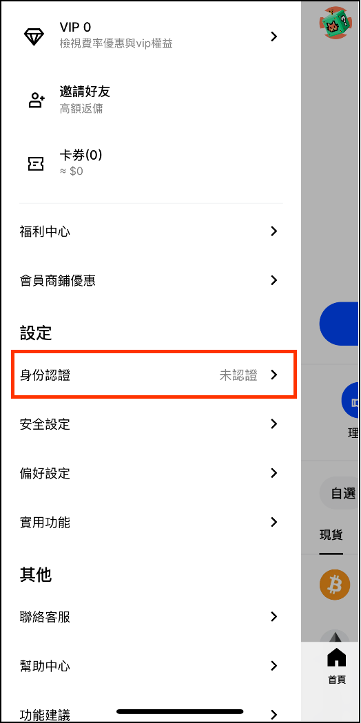 - 进入「个人中心」选择「身份验证」,开始 KYC 流程。