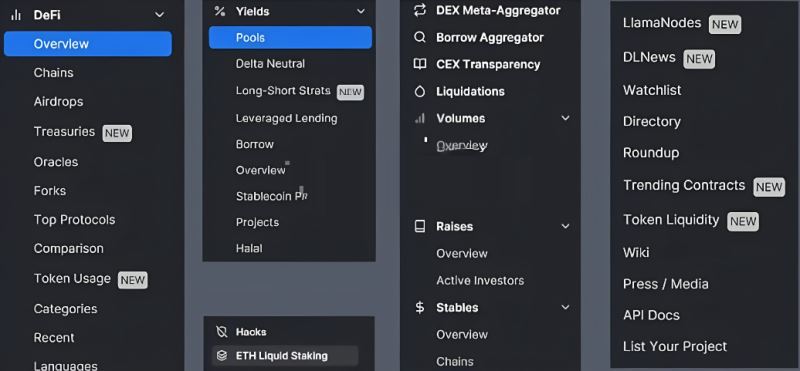 - 链上:DefiLlama看热力图,Dune看具体指标。