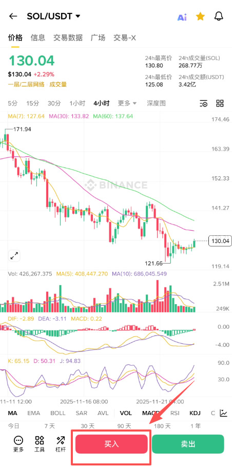 以下,我以币安买SOL 为例,示范如何通过三步骤买入SOL 币。