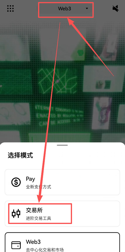 进入币安APP之后,你可能会发现你的页面是下图这样的,下面显示这里是binance的Web3钱包。我们知道binance的Web3钱包和binance交易所的钱包是不一样的,我们就可以点击Web3这里,选择【交易所】。