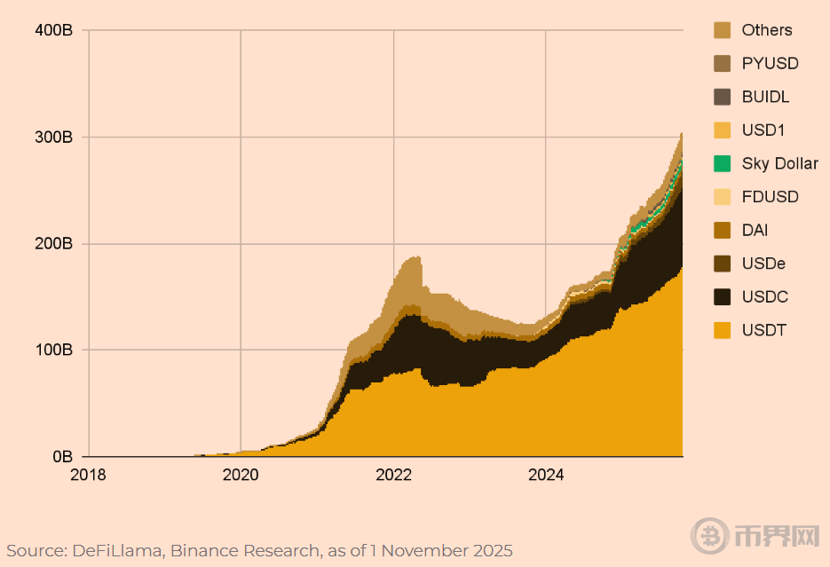 全球稳定币总市值约 3000 亿美元;